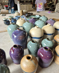 "I am inspired by all aspects of pottery, from recycling clay, to throwing, turning, decorating, glazing and firing. I especially look forward to opening the kiln after a firing to see the finished products. In my classes the emphasis is on having FUN while learning a new creative skill."
